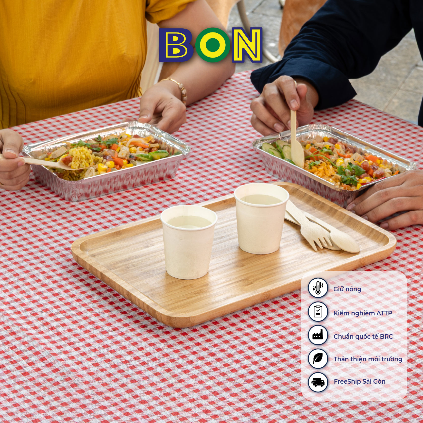 - Hộp nhôm Bon R3 750ml vừa vặn cho các món cơm tấm, cơm chiên dương châu, bún thịt nướng, bún chả Hà Hội…Cảm giác ấm nóng và ngon miệng sẽ được gìn giữ trọn vẹn đến tận tay thực khách nhờ khả năng giữ nhiệt đặc trưng của BON R3.