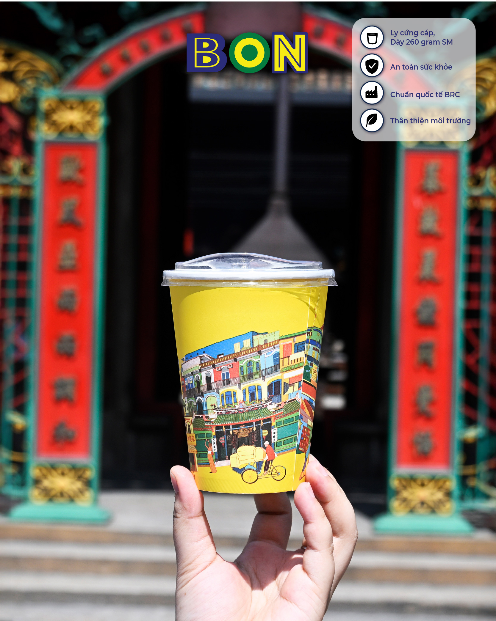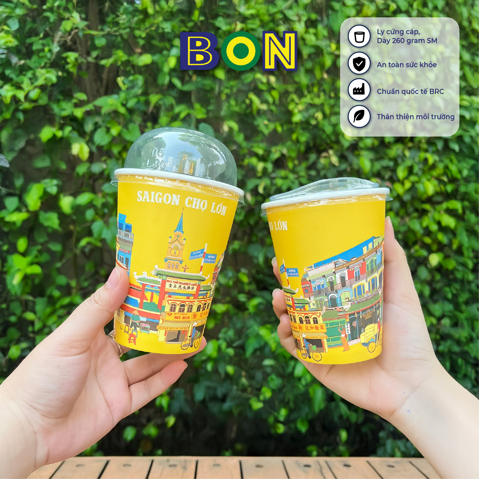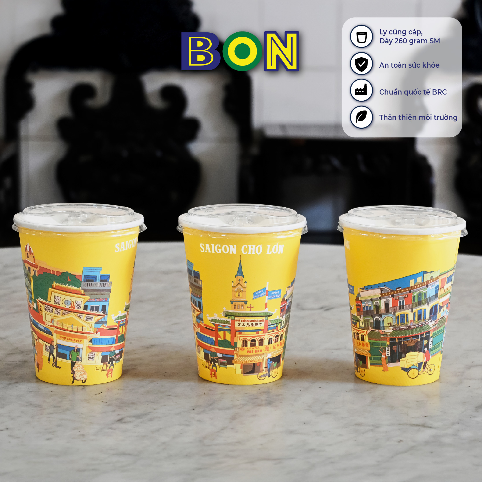- Ly giấy in tranh - Sài Gòn Chợ Lớn 360ml sở hữu thiết kế nổi bật tái hiện lại đời sống thường ngày và những địa điểm nổi bật ở Chợ Lớn, với họa tiết in sắc nét, tạo điểm nhấn thẩm mỹ, và giúp ly nước trở nên hấp dẫn hơn.